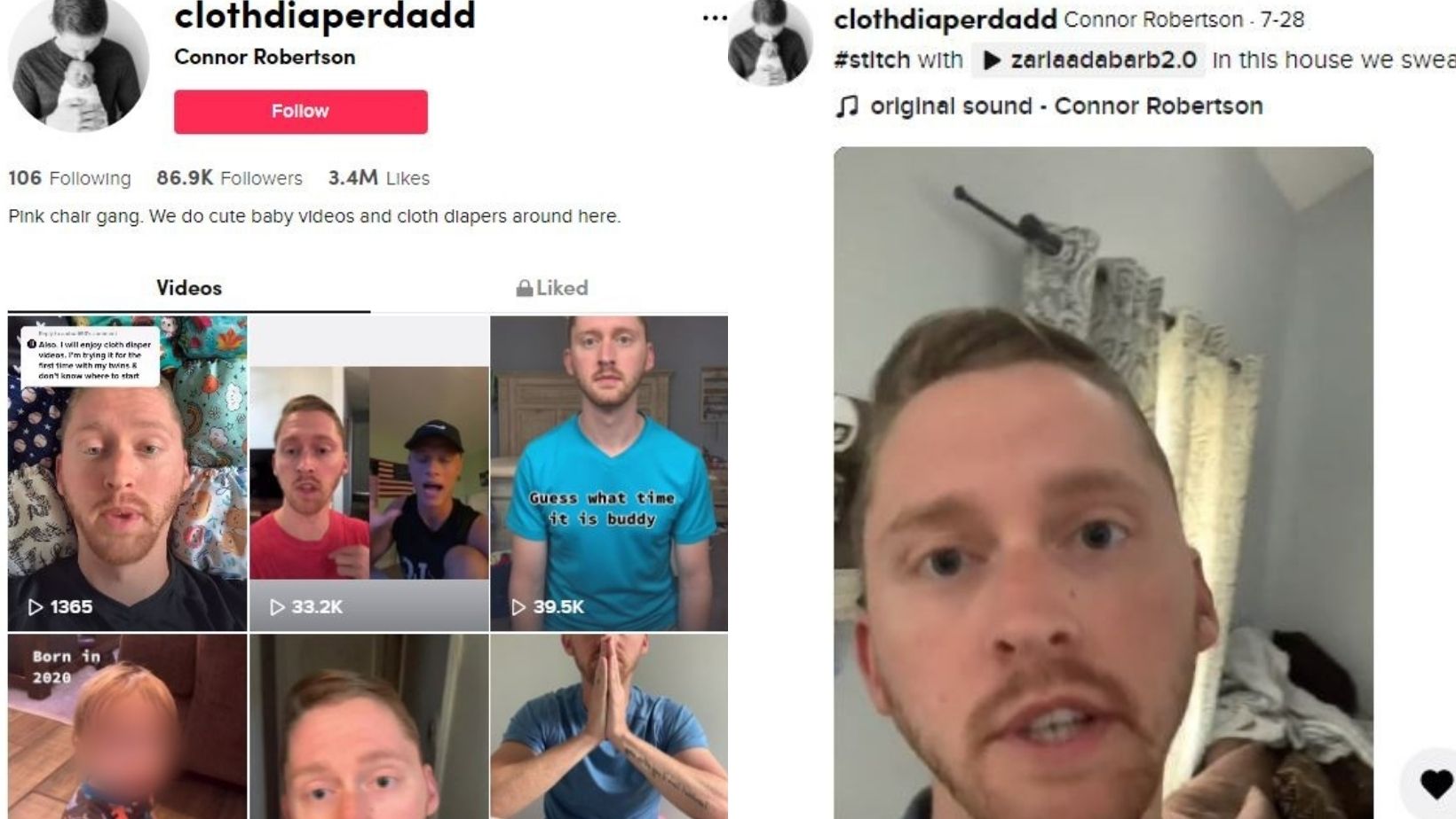 Connor Robertson with a username @clothdiaperdadd and has 87,00 TikTok followers, has shared the reason why he’ll let his son curse as he grows up. He stitched another TikToker to respond to a question they’d posed about parenting styles.