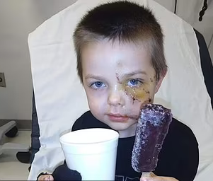 The 5-year-old, who insisted that their dog ‘didn’t mean it,’ has been left unable to smile because of torn ligaments that have resulted in facial paralysis.