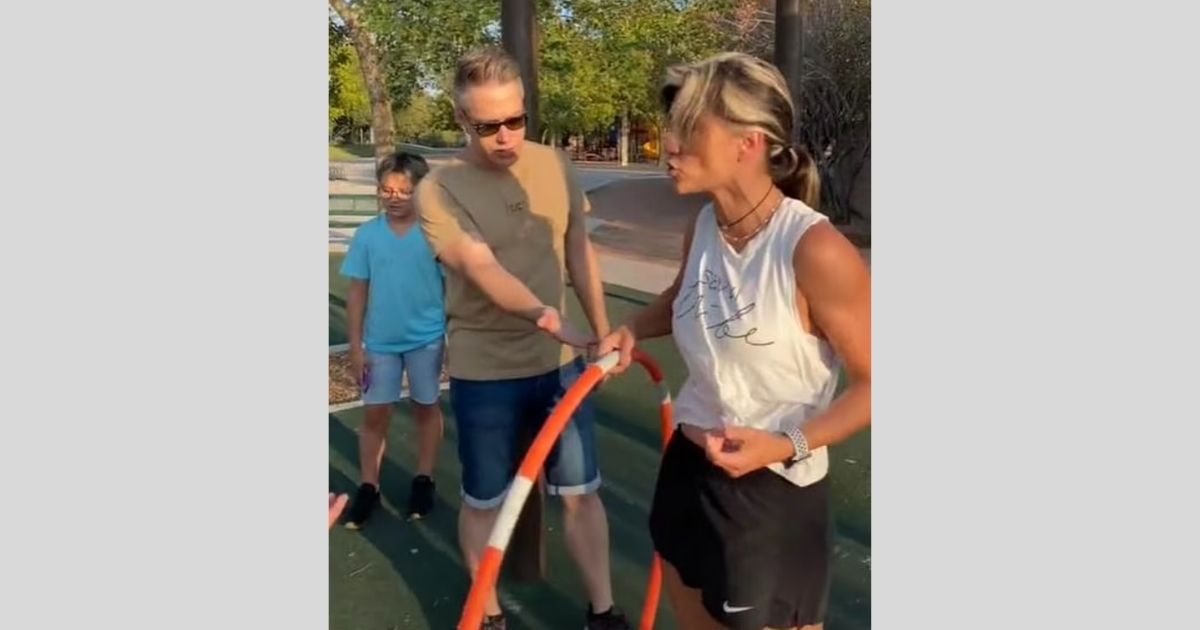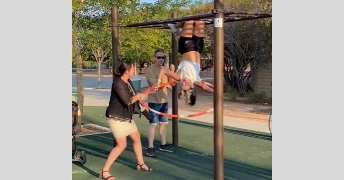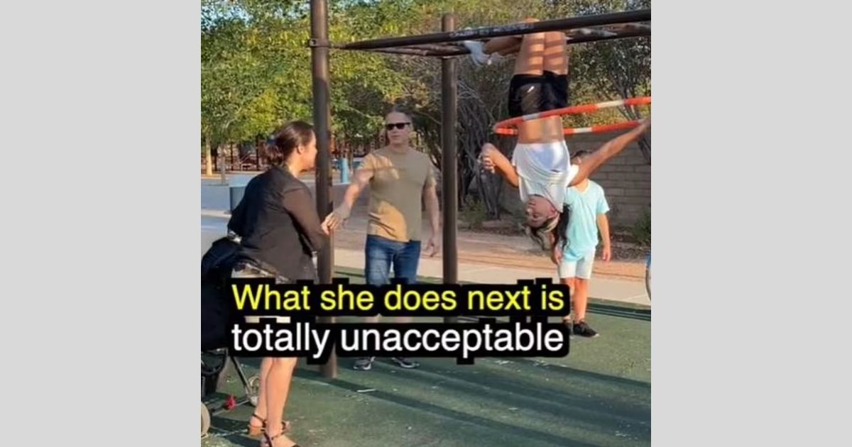 The mother then grabbed Kehayova’s hula hoop and tossed it on the ground, forcing her to get off of the monkey bars.