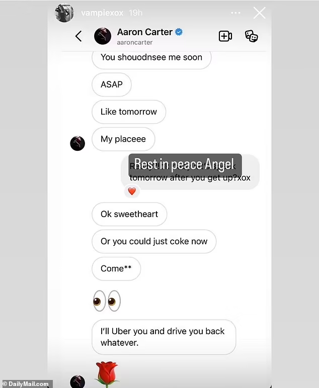 Aaron Carter’s final text message before he was found dead in his bathtub has been revealed.