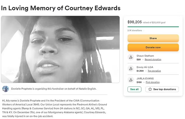 The worker in question has since been identified as Courtney Edwards, a mother-of-three who was working as a ground handing agent.