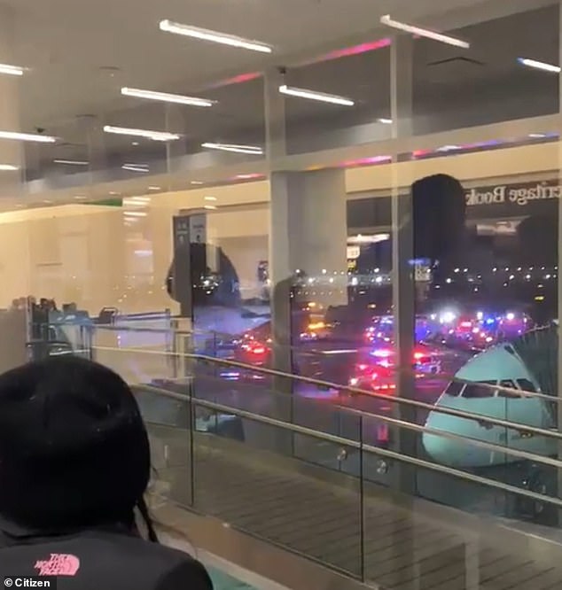 While 60 passengers could be seen getting off the plane in a rush, the other 60 were forced to be evacuated by going through an emergency slide to speed up the process.