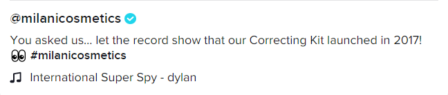 “You asked us… let the record show that our Correcting Kit launched in 2017!” Milani Cosmetics posted on TikTok.