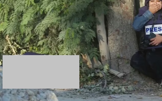 In shocking photos shared by the broadcaster, the lifeless body of the reporter is seen lying on the ground just feet away from her shocked colleague who was crouching and covering her mouth in dismay.