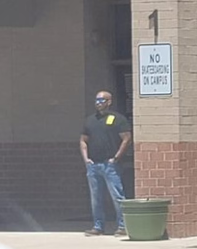 A grateful mother shared a photo of Chelby standing guard outside the school, and the post immediately went viral.