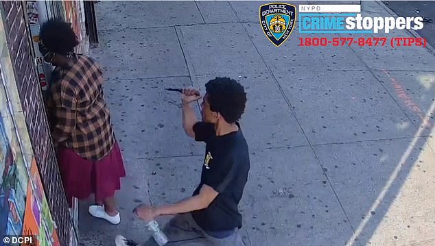Wilson is seen walking on the streets near a juice bar and before she knows it, the creepy stabber stalks her and then stabs her shoulders in the most random attack.