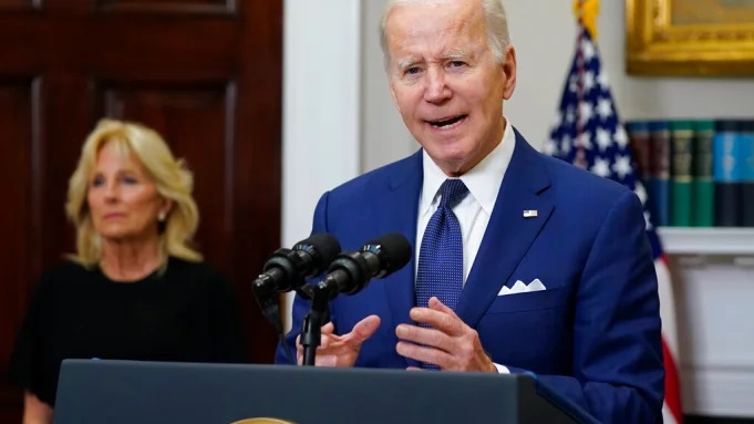 “Uvalde, Texas. An elementary school. Beautiful innocent, second, third, fourth graders. And how many scores of little children who witnessed what happen – see their friends die as if they’re on a battlefield, for God’s sake?” Biden said as he addressed the nation from the White House following his return from Japan on Tuesday evening.