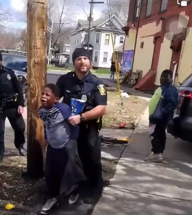 In a shocking viral clip, at least four officers in Syracuse, New York, are seen detaining a 10-year-old boy, whereas one officer held his hands behind his back while pushing him towards the patrol car.