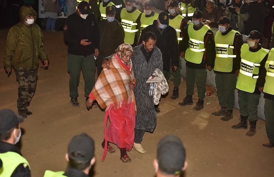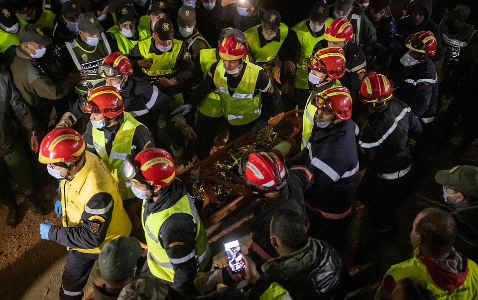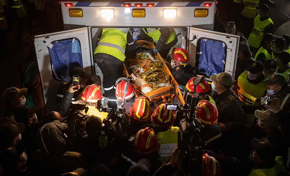 After removing the boy’s body from the tunnel, rescuers could be seen carrying Rayan to the medical team in a golden blanket.