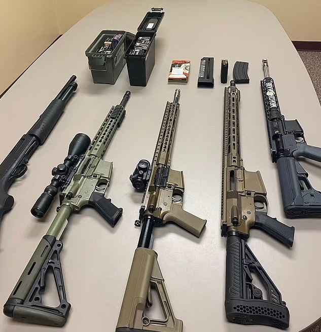 The police also found five firearms, including four untraceable AR-15s that appear to be homemade and a pump-action rifle, in Hinebaugh’s possession. According to the report, the teen’s parents insisted they were unaware of some of the seized weapons.