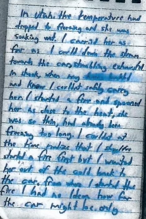 He went on to say her health began degrading and that she kept on shivering from the constant cold after falling in a creek.