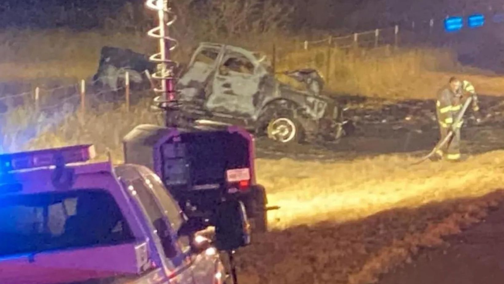 “For unknown reasons, the Dodge pickup drove into the northbound lane and struck the Ford passenger van head on. Both vehicles caught fire and burned,” he added.