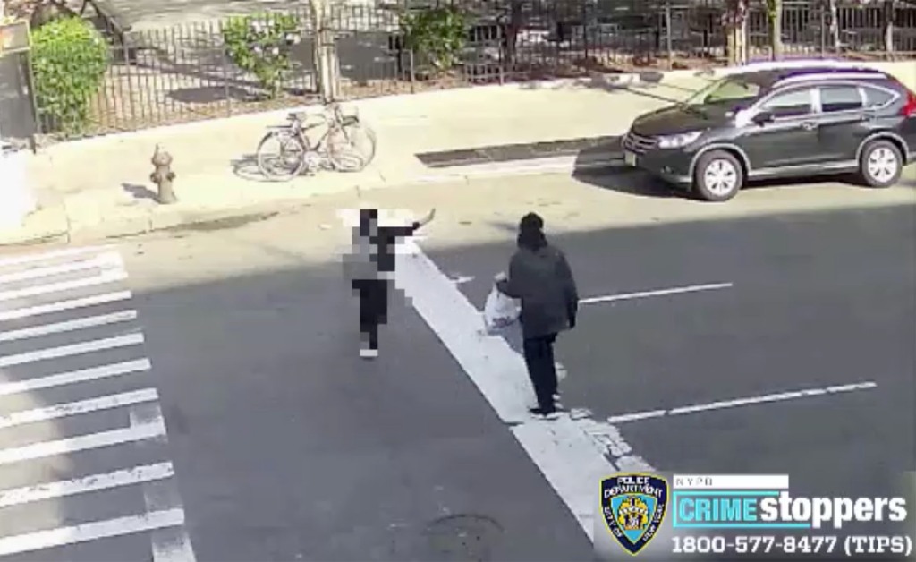 In the video, you can clearly see the innocent woman passing down the street near the Ninth Avenue and West 19th street intersection. The incident reportedly took place during the early hours of the morning on April 24.