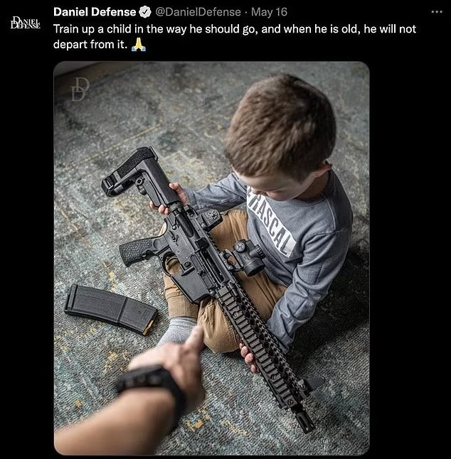 After the photo went viral on Twitter, the weapons firm faced an outpour of criticism. Following a major backlash, Daniel Defense changed its settings to only allow its followers to see their tweets.