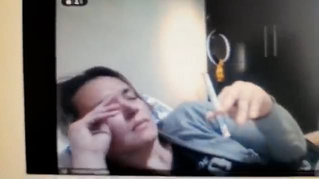 Terrifying leaked video footage has put one judge in the spotlight where she could be spotted lying on her bed in underwear while smoking during a recent court hearing.