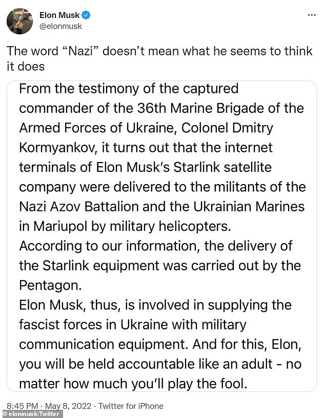 Musk has also been accused of giving a number of Fascist organizations in the Ukraine stable military communications which Russians consider to be a major threat during the ongoing war.