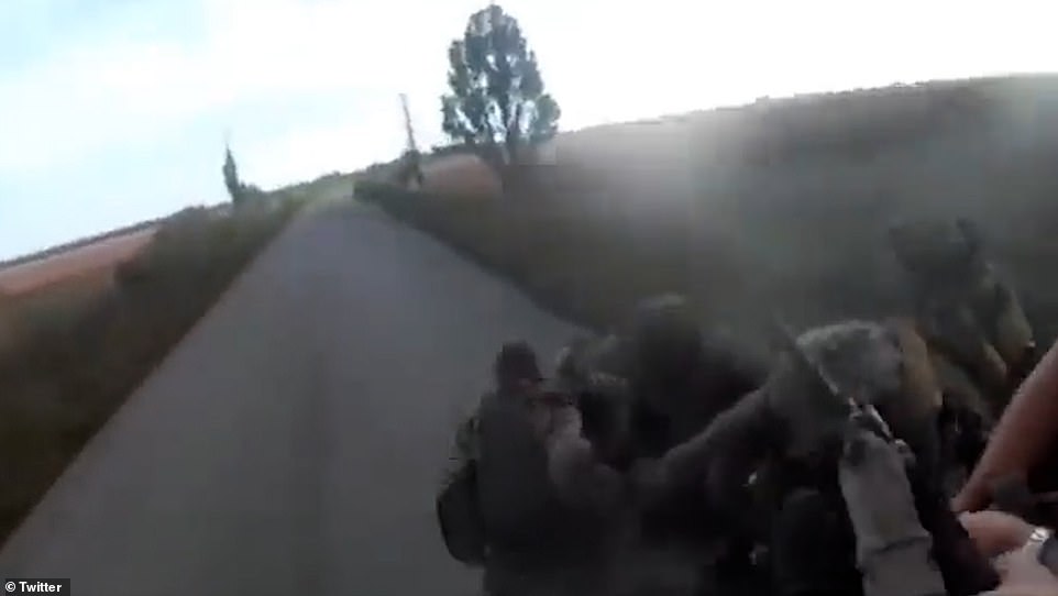 The soldiers are seen scrambling on top of the armored car and then they’re smiling as they run off, clearly a sign that they’ve been defeated on this historic day.
