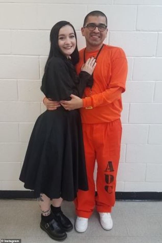 Rebecca’s wedding images featured her husband in his orange jumper prison attire while she donned a black dress. Both could be seen beaming with big smiles.