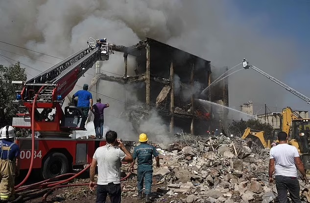 Following the explosion, rescuers and firefighters rushed to the scene to put out the blaze and look for survivors.