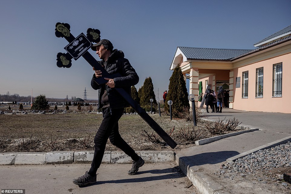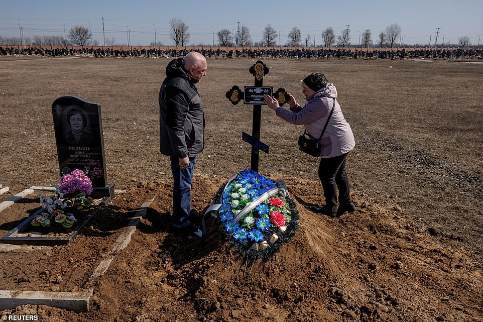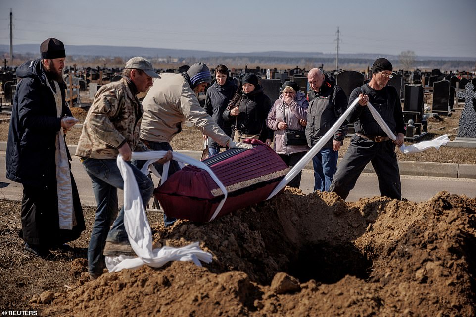 While some could be seen weeping over the crimson-hued coffin as it was slowly lowered down below, others were seen standing at a distance, trying to comprehend the brutal realities of the war in Ukraine.