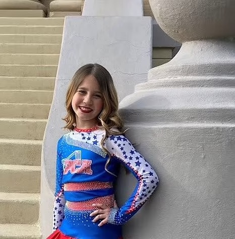 “Macie was the youngest in her family and a princess to her three older brothers and her parents. Macie was full of life and showed joy and love to everyone. Macie’s dad said she loved her Patriot Cheer team. She loved cheering and Macie passed away doing what she loved, being with her team.”