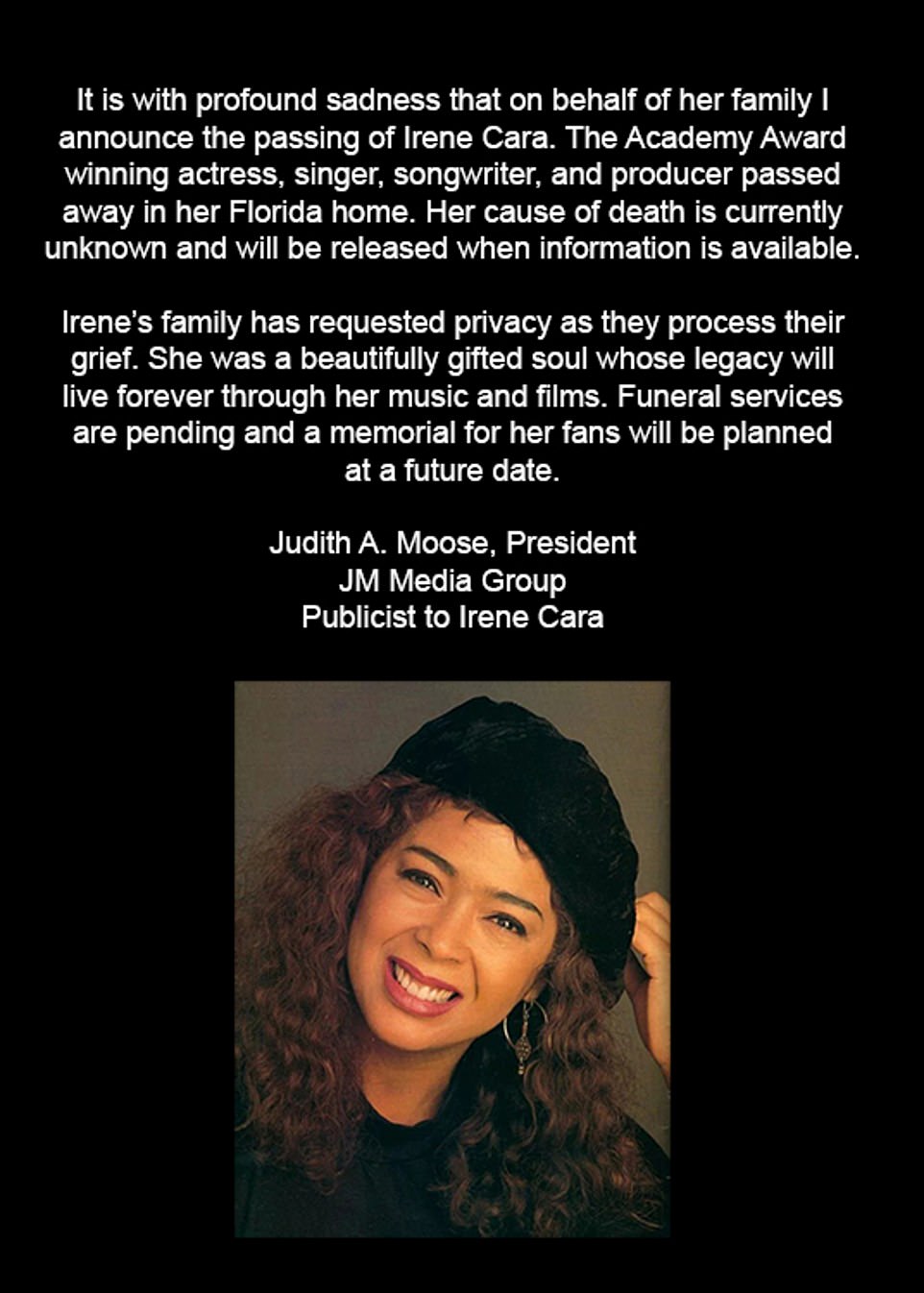 “It is with profound sadness that on behalf of her family, I announce the passing of Irene Cara”- the statement went on to read. And that caused shockwaves across the industry with so many fans sending out heartfelt tributes for the talented woman.