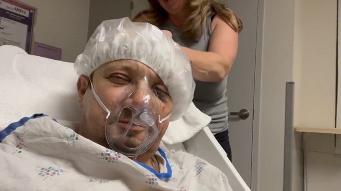 “It’s the first shower in definitely a week or so. Gross,” Renner, clearly woozy and struggling, joked.