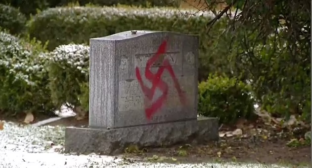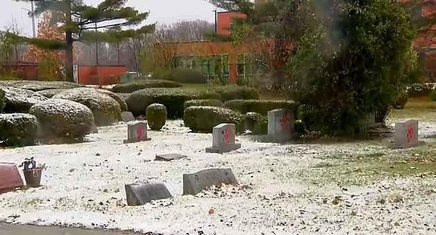 The horrible news comes from the Chicago suburb of Waukegan where the police were called to Am Echod Jewish cemetery after vandals defaced 39 headstones.