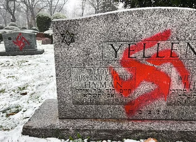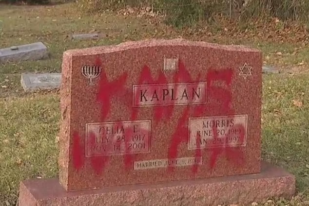 Several dozen headstones at a Jewish cemetery were vandalized with swastikas and ‘Kanye [West] was rite’ graffiti.