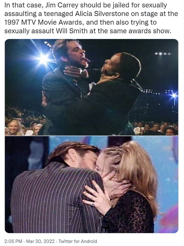 Carrey was even called out for making an attempt to kiss Smith after he was reportedly presented with his award.