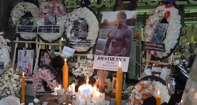 Joesthetics’ girlfriend broke into tears as she paid tribute to her late boyfriend at his memorial in Thailand.