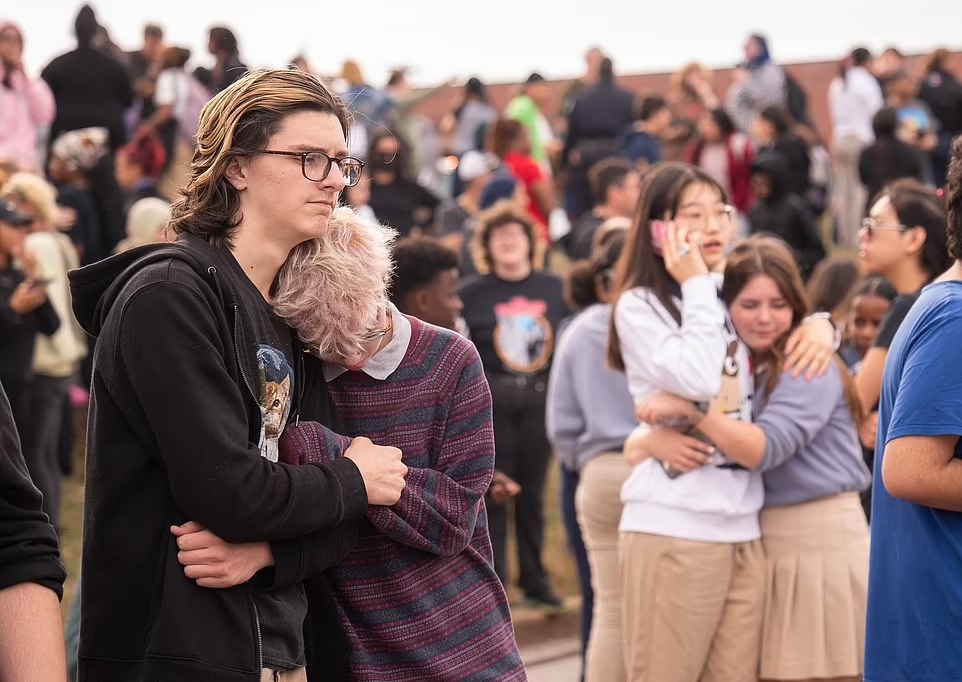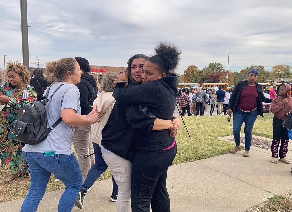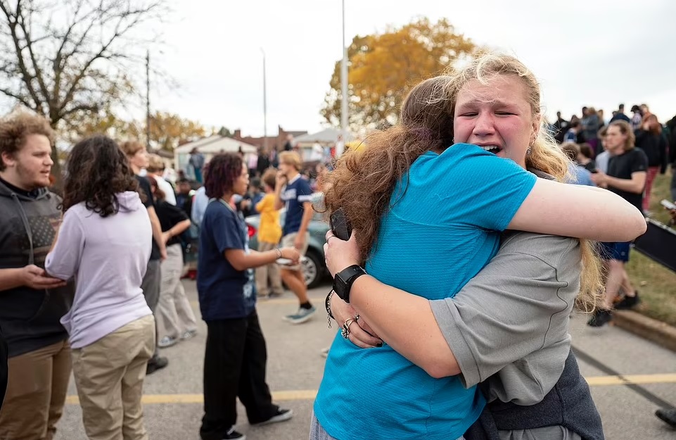 In pictures from outside the school, terrified students and parents were seen breaking into tears and embracing their loved ones.