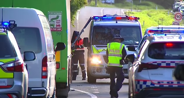 Two mechanics have tragically died after they pulled over to help fix a bus on the Nambour Connection Road in Woombye, Queensland.