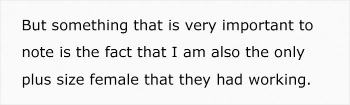 “Yes, I am also the only plus-sized woman out there too. I have never been to any office space that treated me this way. Yes, they have mostly petite girls working for them and they can wear anything. But for me, they suddenly put up all these rules and regulations and that’s not ok”- she added.