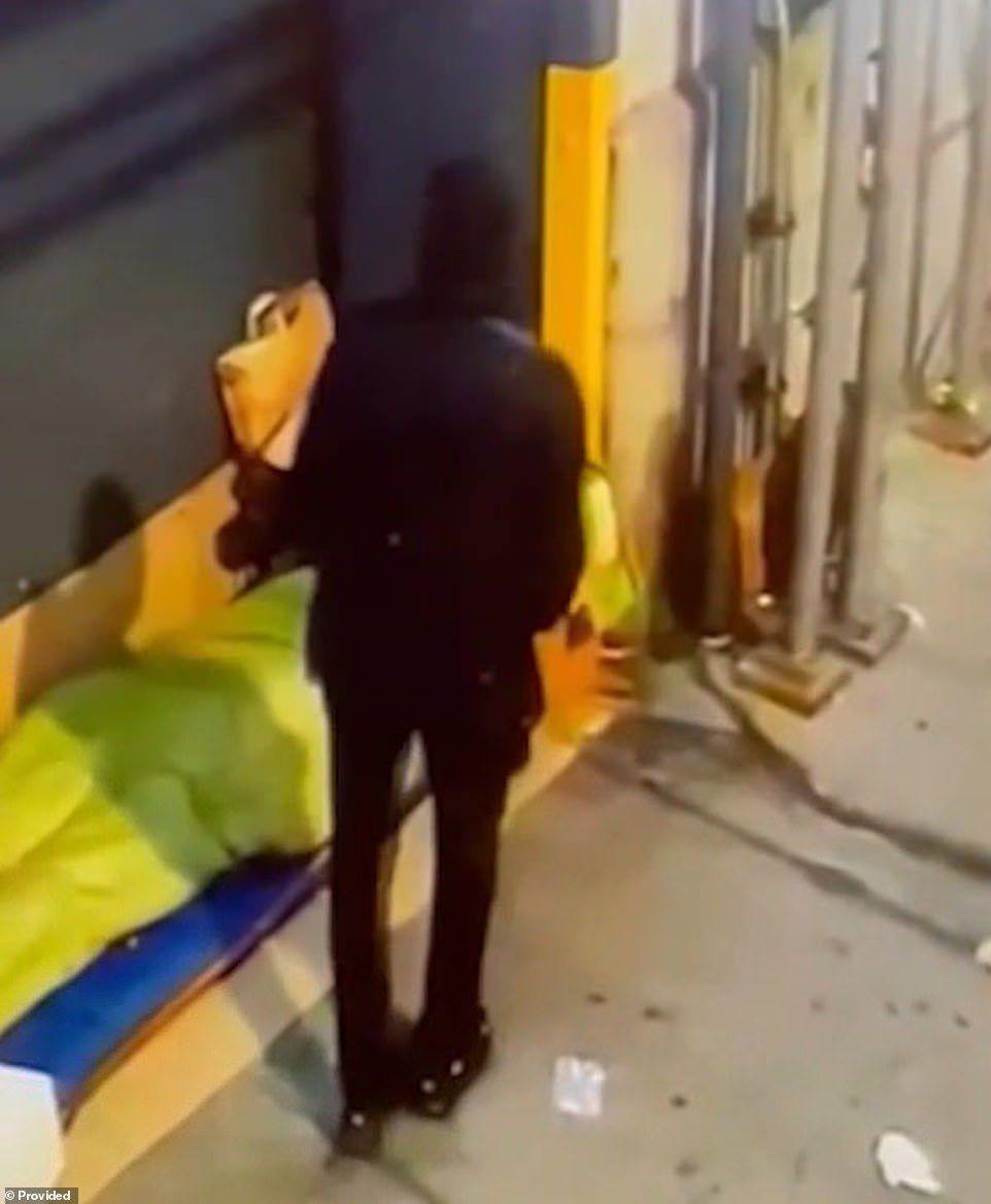 The chilling video footage showed how the shooter tried to wake up him by kicking his yellow-toned sleeping bag. But when he didn’t get up, the shooter fatally shot him in the neck.