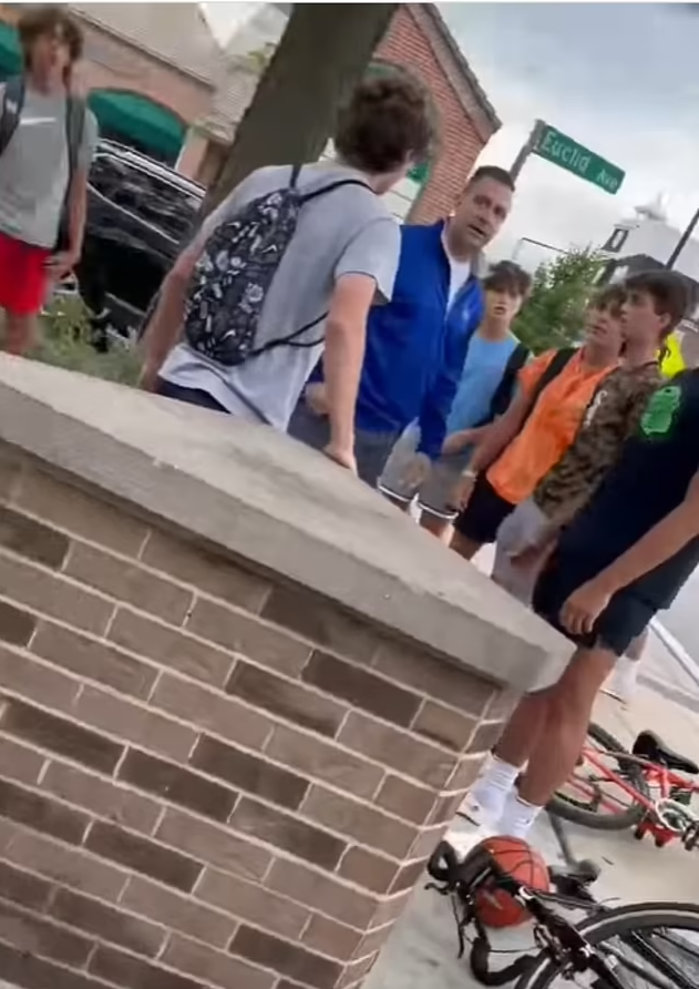 The video shows the boy’s friends getting fed up with the cop, who was heard saying: “It’s my son’s bike! He stole it!”