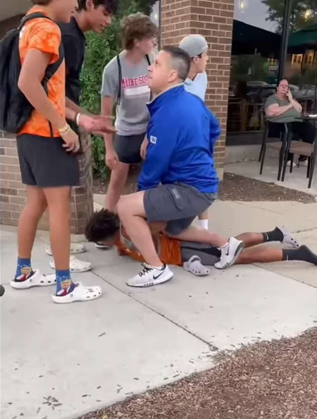 One of the teens can be heard shouting: “Get away from him! You can’t do that!”