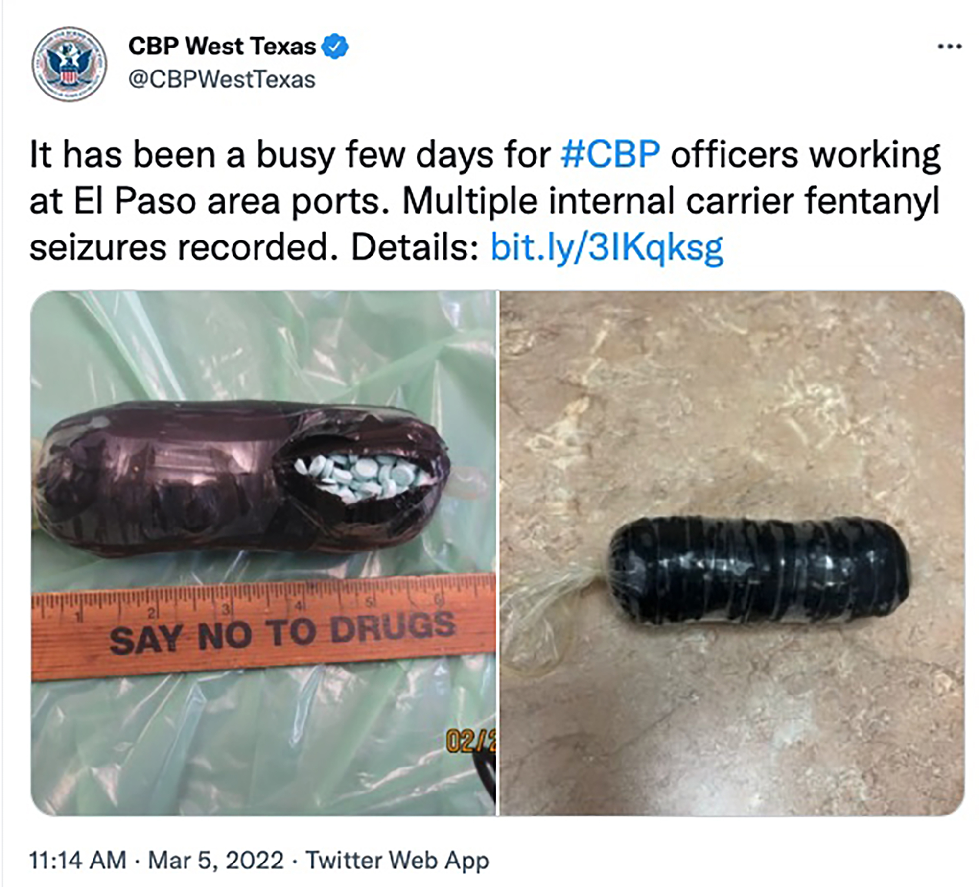 “What so many people don’t realize is how this synthetic opioid carries a significant amount of strength and if this package was to rupture inside an individual’s body, the consequences could potentially be life-threatening”- the director went on to explain.