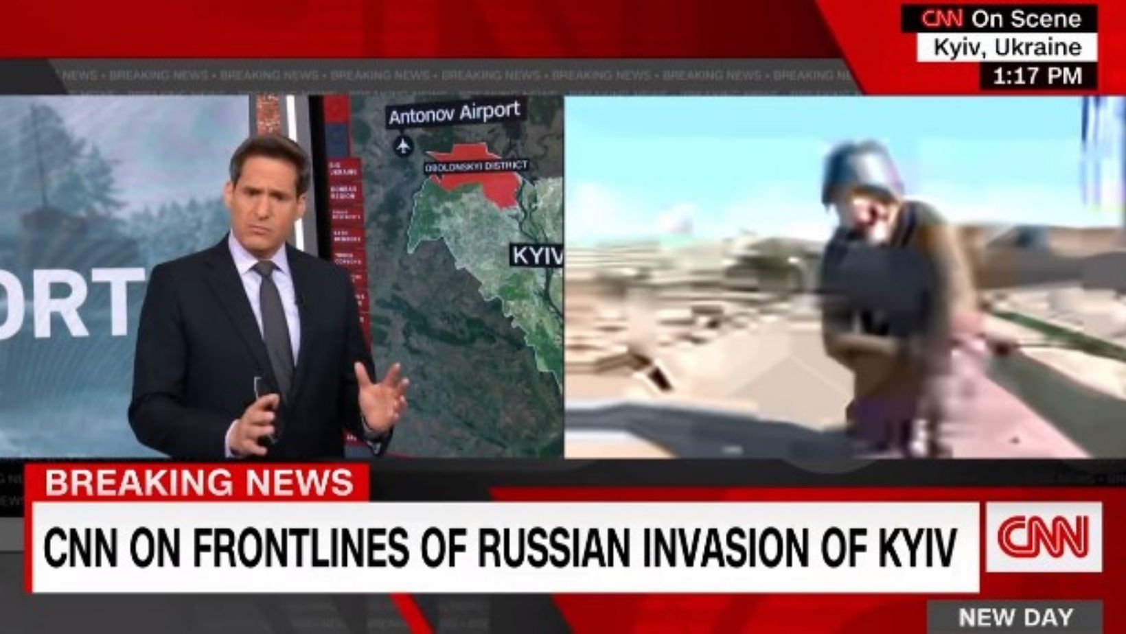 Chance was at the site of a recent battle on the outskirts of Kyiv, speaking on air to a colleague in the U.S. when he stood up and retreated several steps.