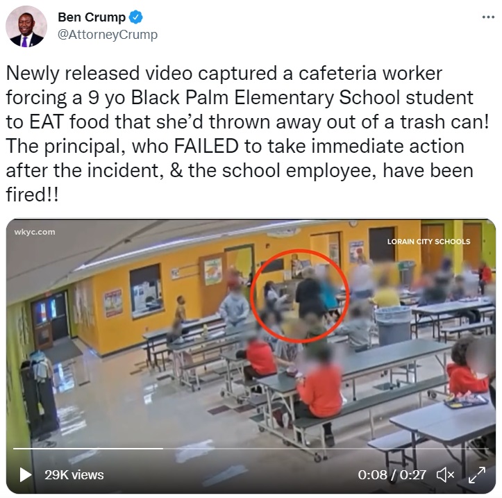 “We see in this video, she throws her lunch away like thousands of students do across the country do every day,” Jared Klebanow, the girl’s family’s attorney, said.