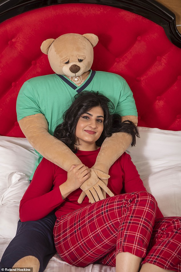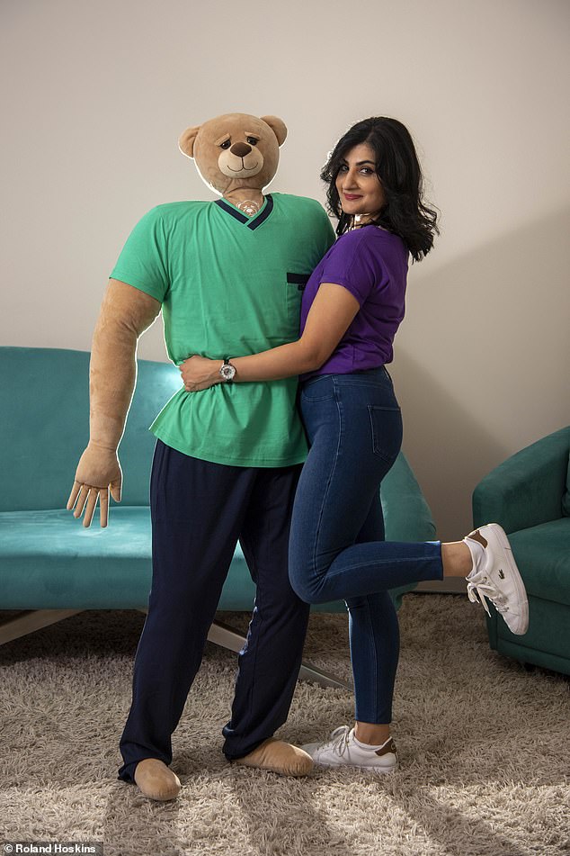 A human-sized teddy has taken over the heart of a young woman who calls him her most faithful companion.