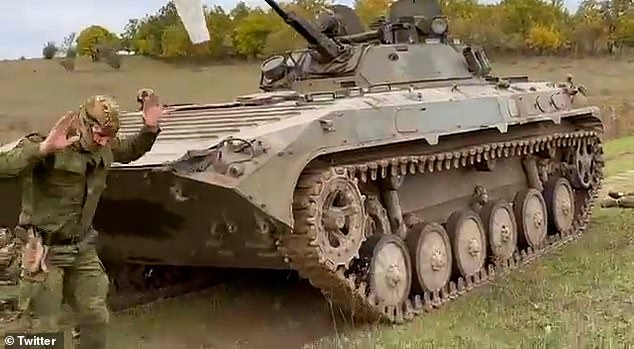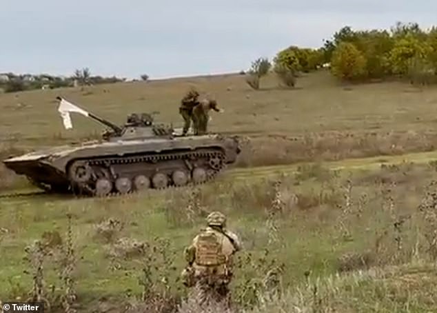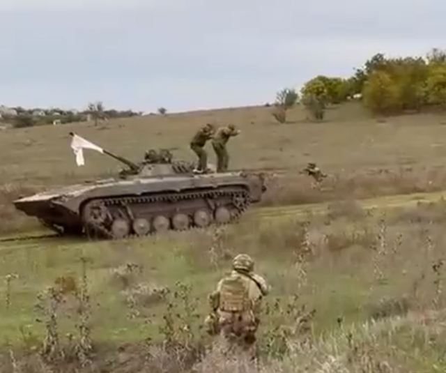 The shocking video shows the mega BMP-2 tank driving out with a giant white flag that was tied to its turret. And for those that aren’t aware, this is a sign of surrender.