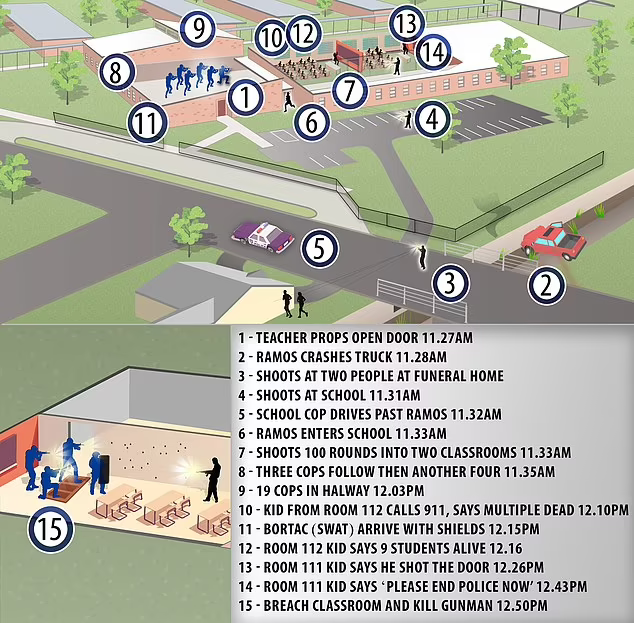 “The protocols were breached. The active shooter protocols dictate that you go in,” he added, nothing that within minutes of the gunman opening fire, cops were already on scene. “First there were seven officers, by 12.03pm there were 19 officers. So many things went wrong here.”