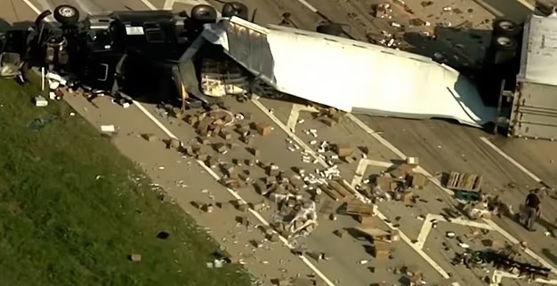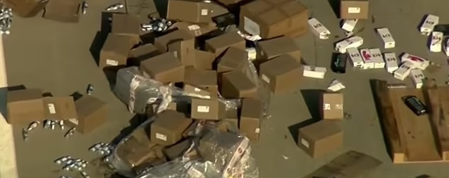 In pictures from the scene, thousands of boxes and products could be seen lying all around the highway.