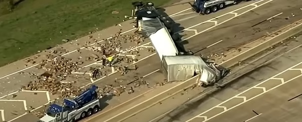 While the Oklahoma Police Department didn’t confirm the nature of the spilled goods right away, zoomed-in photos of the crash site served as a confirmation of their own.
