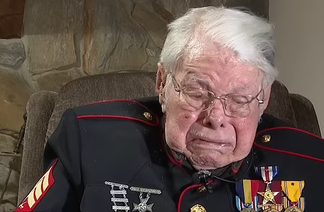 A US Marine veteran who served in World War II broke down in tears as discussed