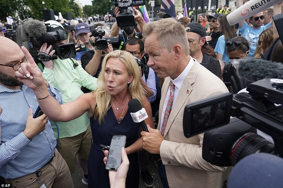 While some protested against the ruling, there was definitely another crowd present who began to celebrate the decision, and amongst them included controversial GOP Rep Marjorie Taylor.