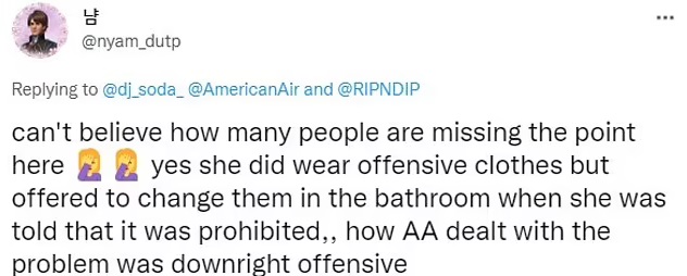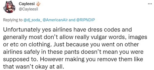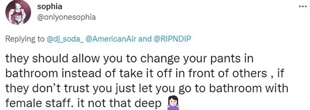 Many, however, also took a jab at American Airlines as they insisted the staff should have let the DJ change in the bathroom rather than at the gate.