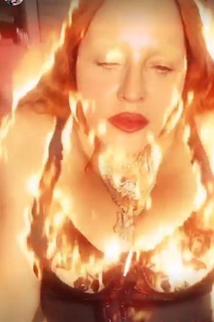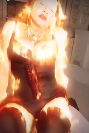 Applying a special filter to make it appear like she was on fire, the Material Girl hitmaker shared her saucy images on Instagram Stories and wrote: “The Demo… She’s Burning up.”