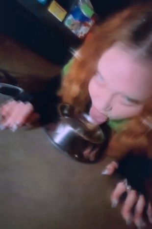 She continues to surprise her fans with jaw-dropping videos, with one showing her licking water out of a dog bowl.